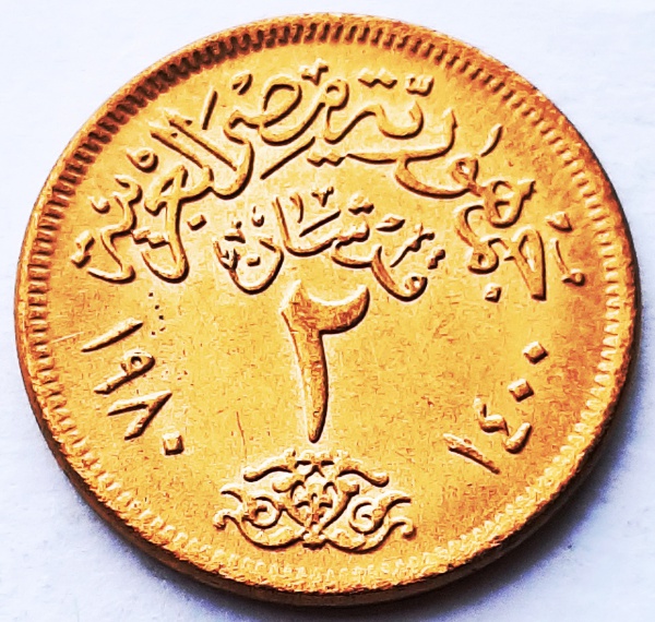 • Egito 1980 2 Piastres Alumínio-Bronze KM# 500