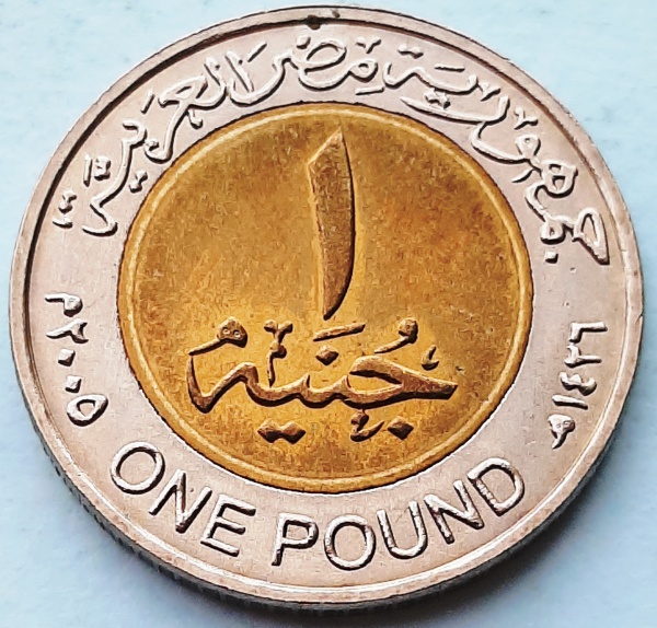• Egito 2005 1 Libra Bimetálica: centro de Latão, anel de Cupro-Níquel KM# 940
