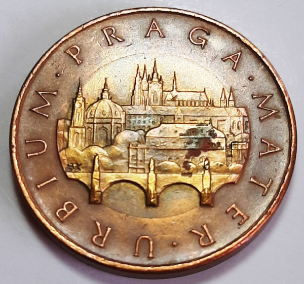 • República Checa 1993 50 Coroas Bimetálica: centro de Aço com revestimento de Latão, anel de Aço com revestimento de Cobre KM# 1 (Linda Pátina)