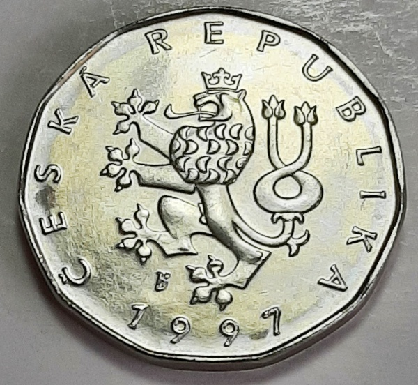 • República Checa 1997 2 Coroas Aço com revestimento de Níquel KM# 9