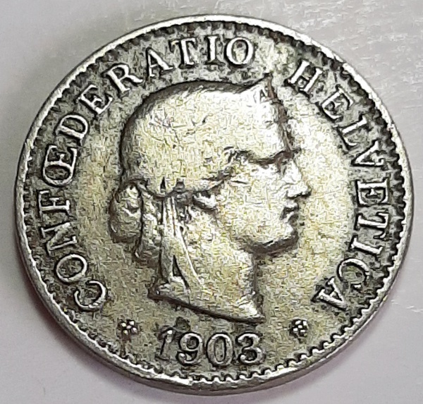 • Suíça 1903 5 Rappen Cupro-Níquel KM# 26