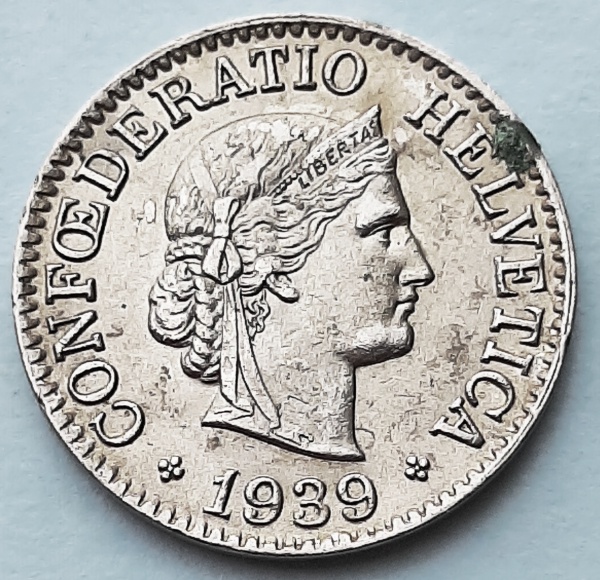 • Suíça 1939 10 Rappen Níquel KM# 27b
