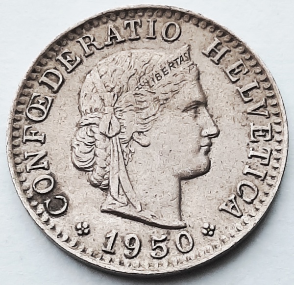 • Suíça 1950 20 Rappen Níquel KM# 29 a