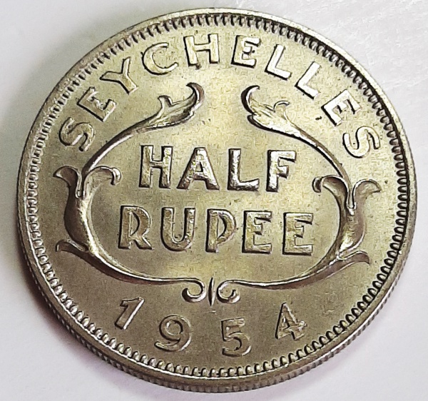 • Ilhas Seychelles 1954 ½ Rúpia Cupro-Níquel KM# 12 (Apenas 72 Mil Cunhadas)
