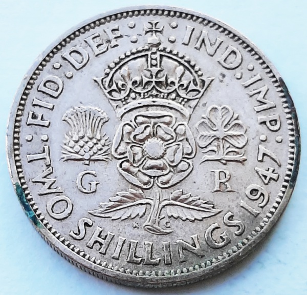 • Reino Unido 1947 2 Shillings (florins) Rainha Elizabeth II Cupro-Níquel KM# 865