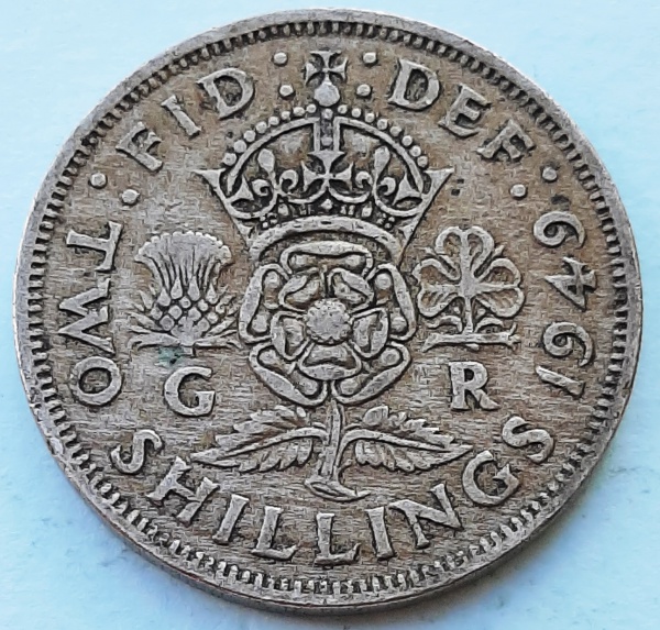 • Reino Unido 1949 2 Shillings (florins) Rainha Elizabeth II Cupro-Níquel KM# 878