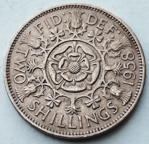 • Reino Unido 1958 2 Shillings (florins) Rainha Elizabeth II Cupro-Níquel KM# 906
