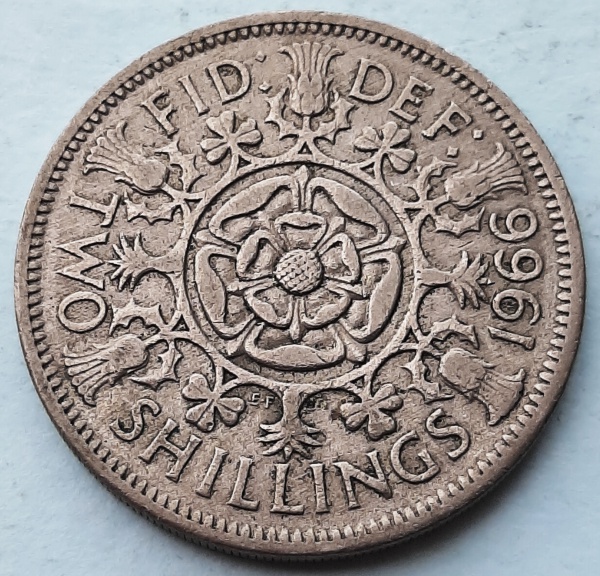 • Reino Unido 1966 2 Shillings (florins) Rainha Elizabeth II Cupro-Níquel KM# 906