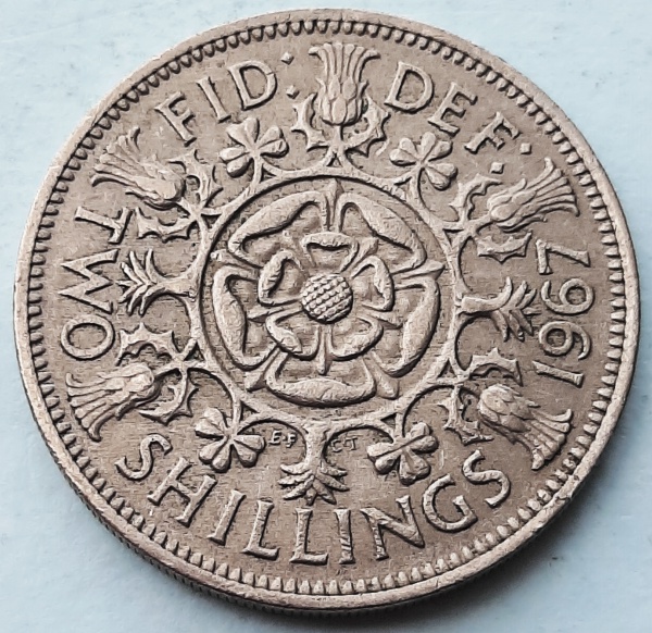 • Reino Unido 1967 2 Shillings (florins) Rainha Elizabeth II Cupro-Níquel KM# 907
