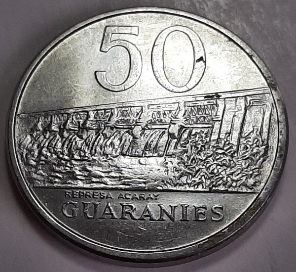 • Paraguai 1980 50 Guaranis Aço inoxidável KM# 169