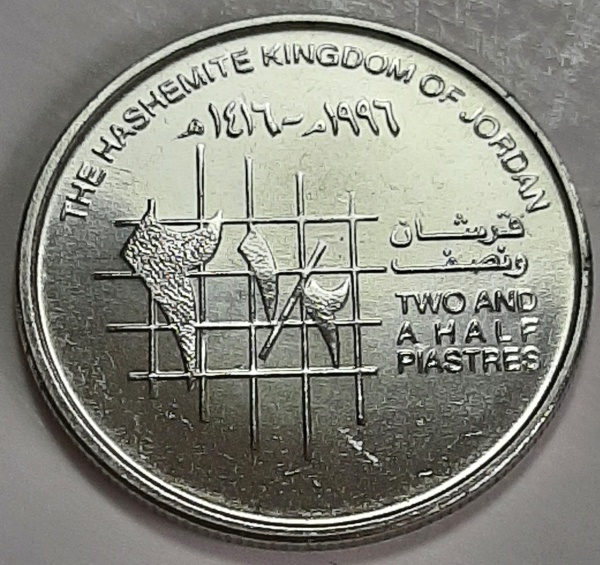 • Jordânia 1996 2½ Piastres Aço inoxidável KM# 53