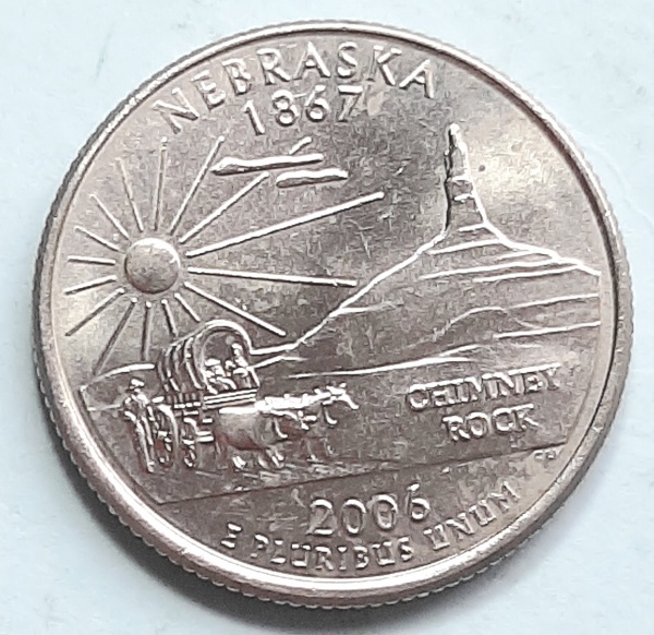 • Estados Unidos 2006 `Nebraska` Moeda Comemorativa da Série State Quarters Cunhagem `D` Denver KM# 383