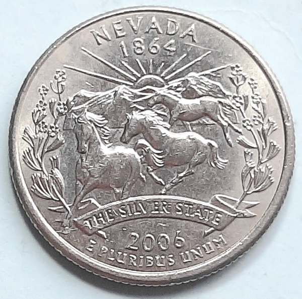 • Estados Unidos 2006 `Nevada` Moeda Comemorativa da Série State Quarters Cunhagem `P` Filadélfia KM# 382