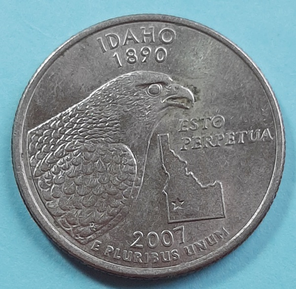 • Estados Unidos 2007 Idaho Moeda Comemorativa da Série State Quarters Cunhagem D Denver KM# 398