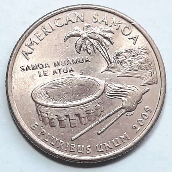 • Estados Unidos 2009 `Samoa Americana` Moeda Comemorativa da Série State Quarters Cunhagem `P` Filadélfia KM# 448