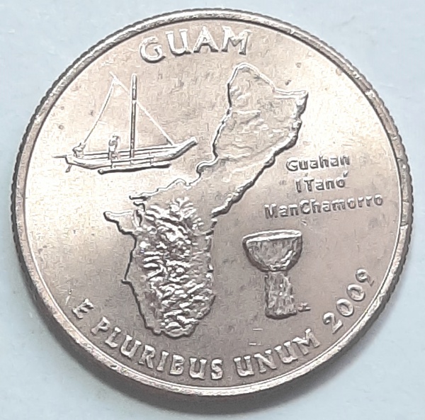 • Estados Unidos 2009 `Guam` Moeda Comemorativa da Série State Quarters Cunhagem `P` Filadélfia KM# 447