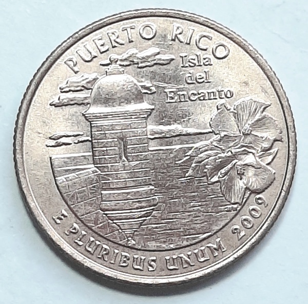 • Estados Unidos 2009 `Estado Livre Associado de Porto Rico` Moeda Comemorativa da Série State Quarters Cunhagem `P` Filadélfia KM# 446