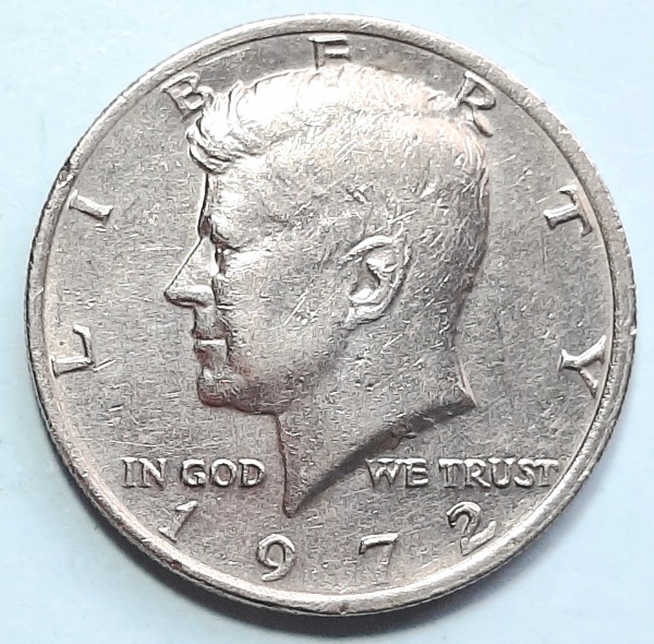 • Estados Unidos 1972 `Kennedy Half Dollar` Meio Dólar Cobre com revestimento de Cupro-Níquel Sem Marca de Cunhagem KM# 202b