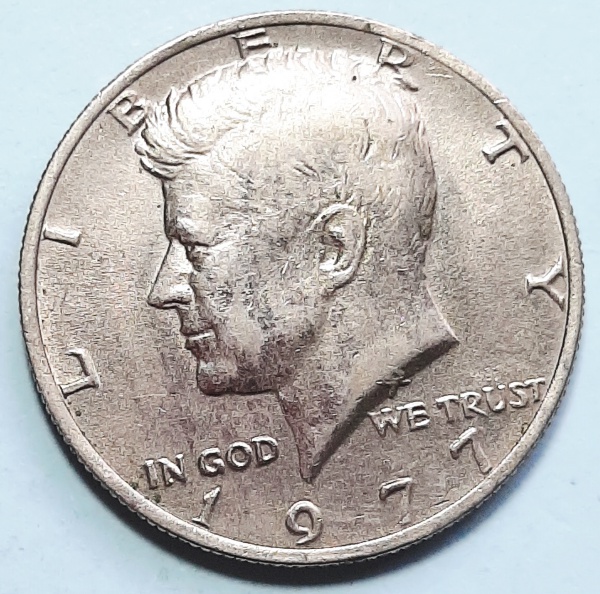 • Estados Unidos 1977 `Kennedy Half Dollar` Meio Dólar Cobre com revestimento de Cupro-Níquel Sem Marca de Cunhagem KM# A202b