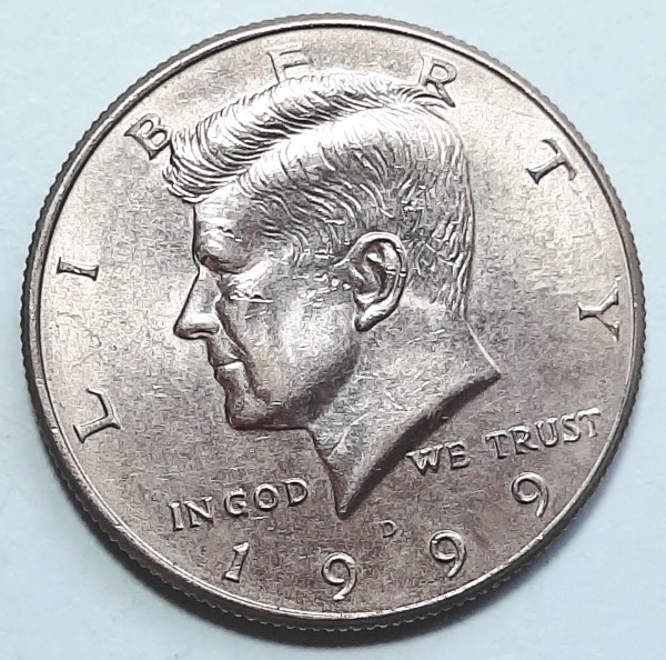 • Estados Unidos 1999 `Kennedy Half Dollar` Meio Dólar Cobre com revestimento de Cupro-Níquel Cunhagem `D` Denver KM# A202b