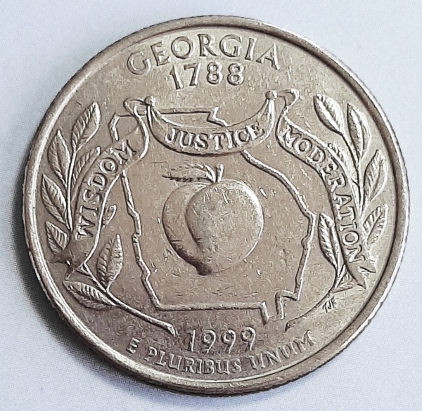 • Estados Unidos 1999 `Geórgia` Moeda Comemorativa da Série State Quarters Cunhagem `D` Denver KM# 296