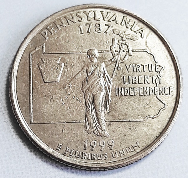 • Estados Unidos 1999 `Pensilvânia` Moeda Comemorativa da Série State Quarters Cunhagem `D` Denver KM# 294