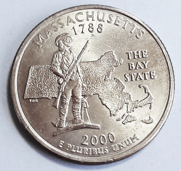 • Estados Unidos 2000 `Massachusetts` Moeda Comemorativa da Série State Quarters Cunhagem `P` Filadélfia KM# 305