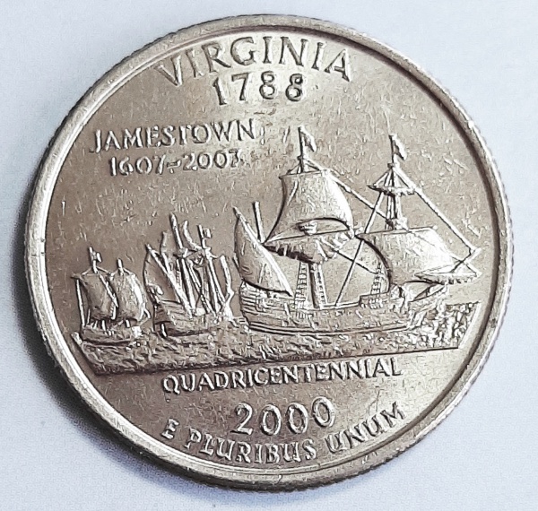 • Estados Unidos 2000 `Virgínia` Moeda Comemorativa da Série State Quarters Cunhagem `D` Denver KM# 309