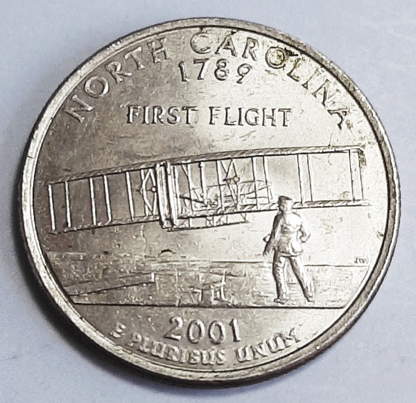 • Estados Unidos 2001 `Carolina do Norte` Moeda Comemorativa da Série State Quarters Cunhagem `D` Denver KM# 319