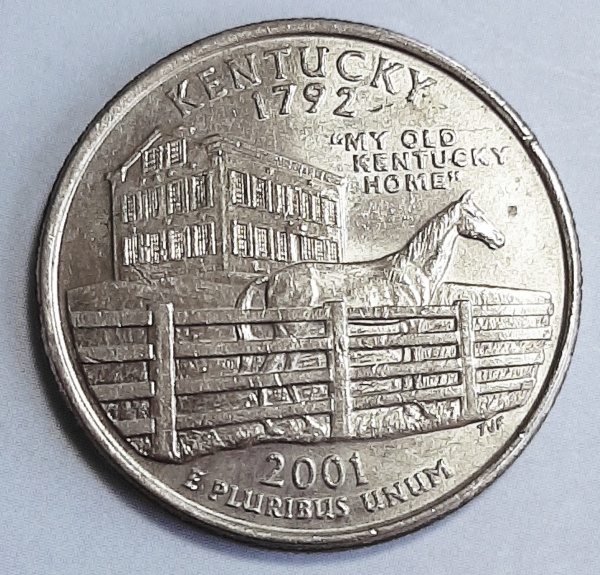 • Estados Unidos 2001 `Kentucky` Moeda Comemorativa da Série State Quarters Cunhagem `P` Filadélfia KM# 322