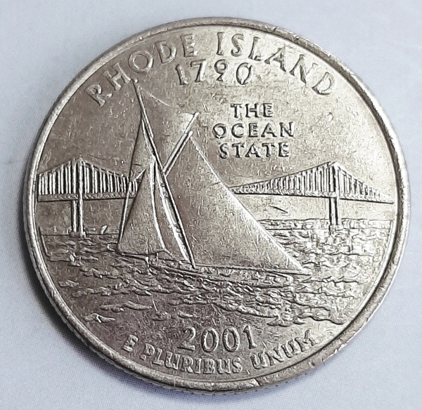 • Estados Unidos 2001 `Rhode Island` Moeda Comemorativa da Série State Quarters Cunhagem `D` Denver KM# 320