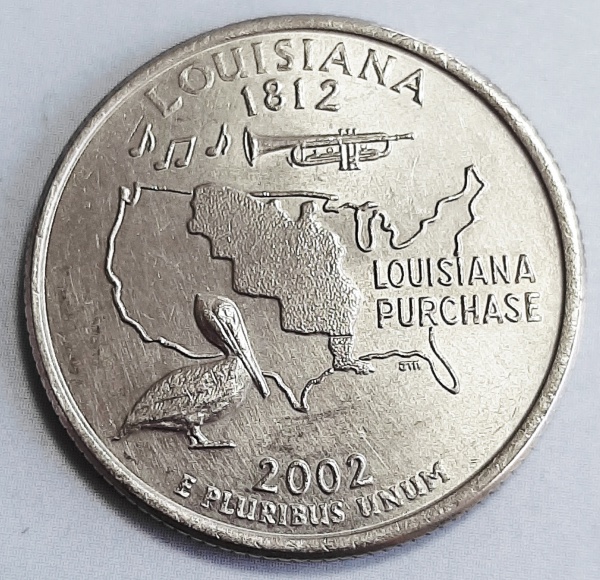 • Estados Unidos 2002 `Louisiana` Moeda Comemorativa da Série State Quarters Cunhagem `D` Denver KM# 333
