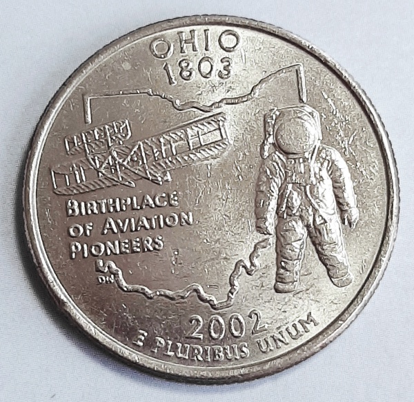 • Estados Unidos 2002 `Ohio` Moeda Comemorativa da Série State Quarters Cunhagem `P` Filadélfia KM# 332