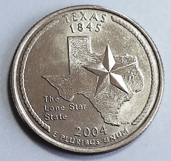 • Estados Unidos 2004 `Texas` Moeda Comemorativa da Série State Quarters Cunhagem `D` Denver KM# 357