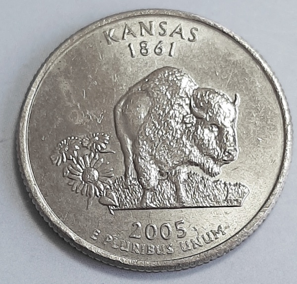 • Estados Unidos 2005 `Kansas` Moeda Comemorativa da Série State Quarters Cunhagem `P` Filadélfia KM# 373
