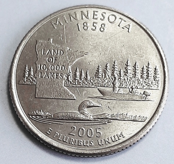 • Estados Unidos 2005 `Minnesota` Moeda Comemorativa da Série State Quarters Cunhagem `D` Denver KM# 371